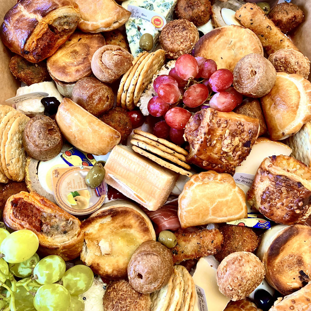 Filled artisan rolls and wraps, salad of your choice (caesar salad, halloumi salad, superfood salad) Sausage rolls, fruit or dessert platter, still or sparkling water - £10.95 per head