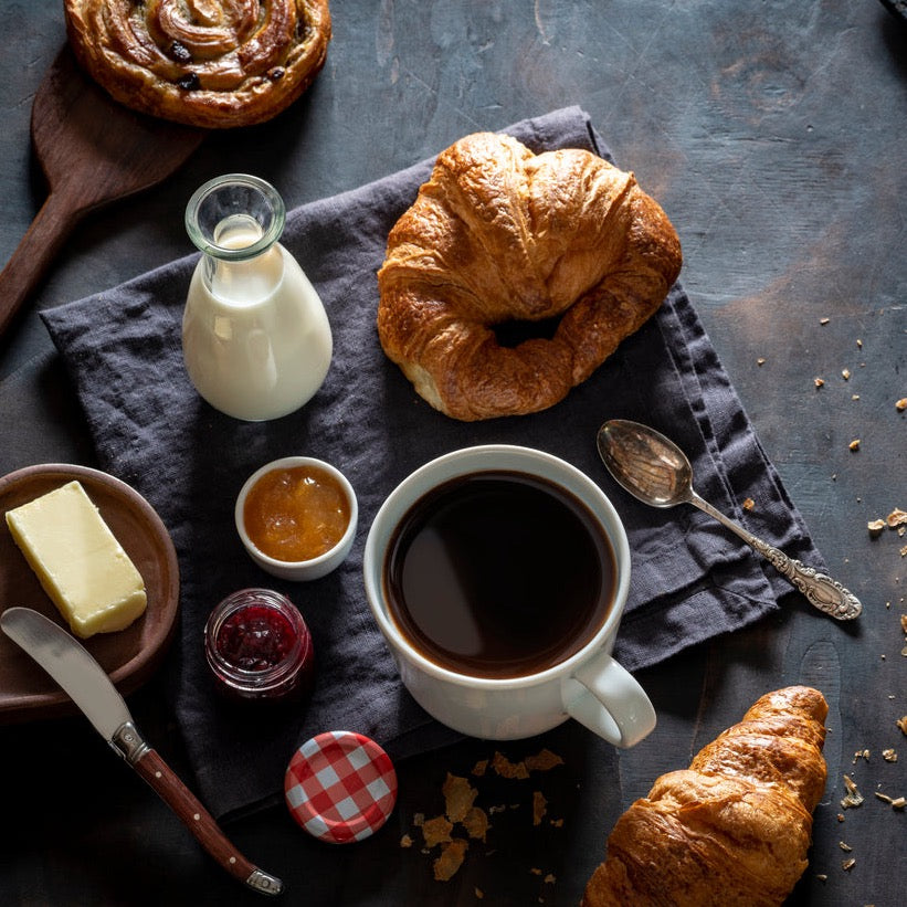 Filled with sweet pastries, fruit, yogurt, filled bacon rolls or filled bagels, scones, mini jam pots and clotted cream.